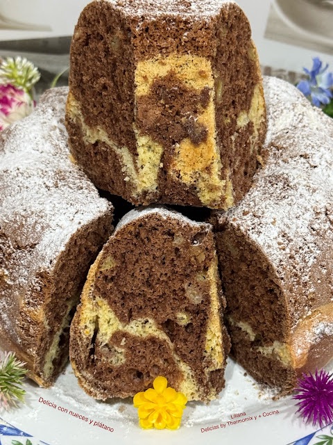 Para hoy un rico y sabroso bizcocho con nueces y plátano, nos a encantado.