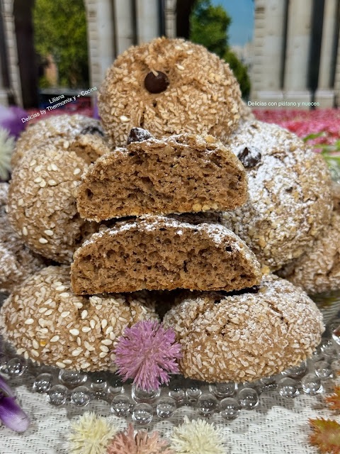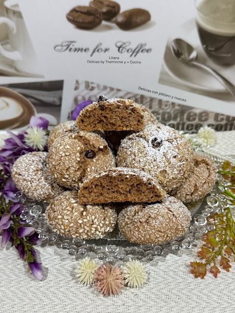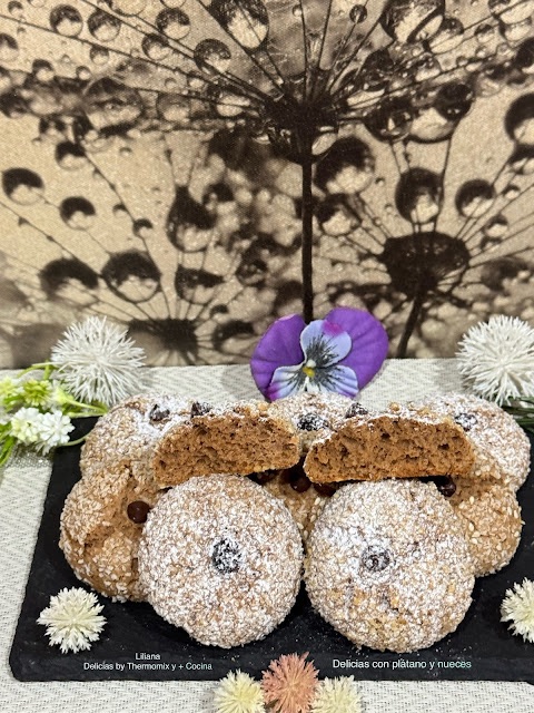 Para hoy os presento estas maravillosas galletas craqueladas con plátano y nueces, que nos han encantado es poco dicho, una maravilla, se deshacen en la boca y están muy sabrosas.
