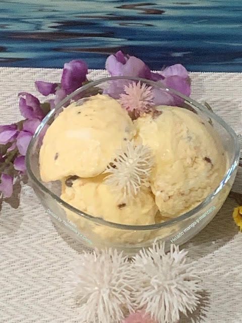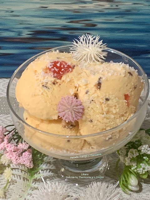 Como el calor sigue con nosotros, para refrescarnos que es mejor que un rico helado casero. Hoy vamos a preparar un rico Helado de Mango y manzanas.