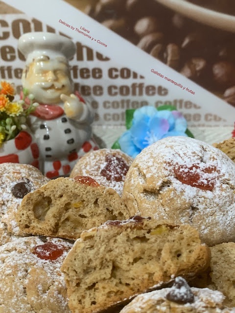 Horneamos unos 17-20 min. en el horno precalentado a 180ºC, depende de cada horno y el tamaño de las galletas. Por arriba van a coger un color doradito.