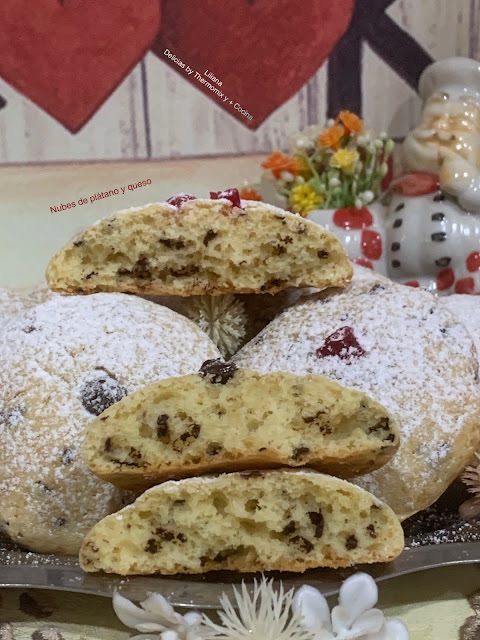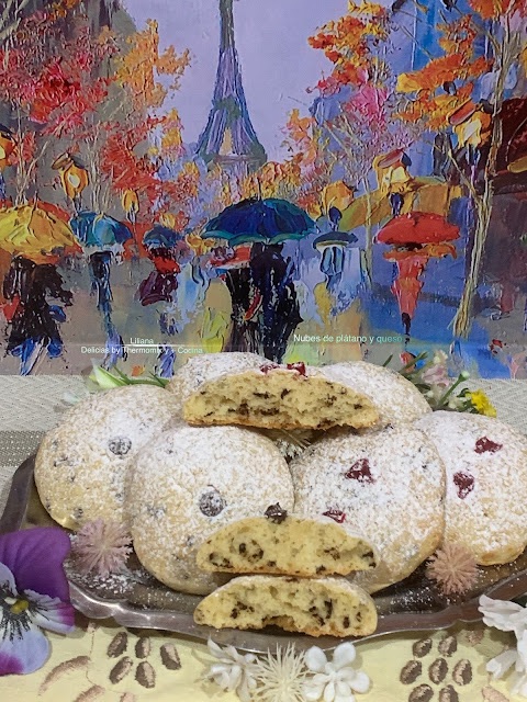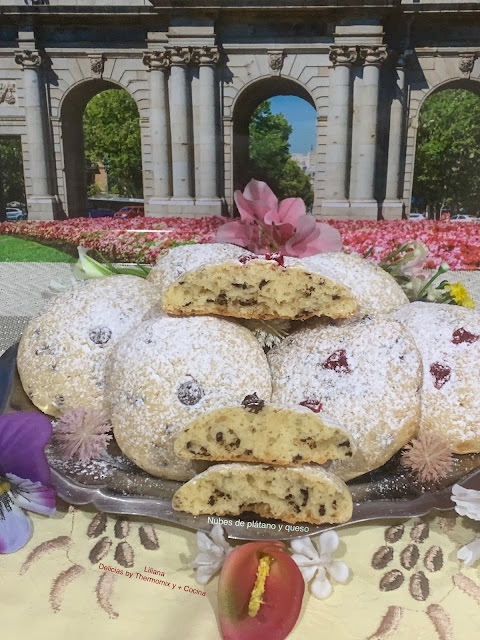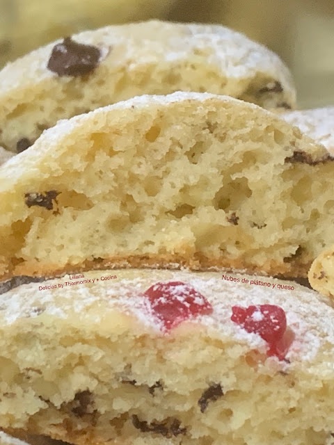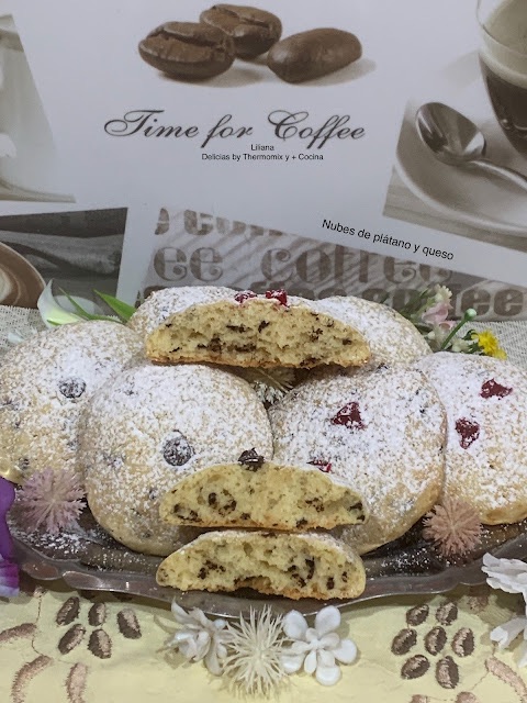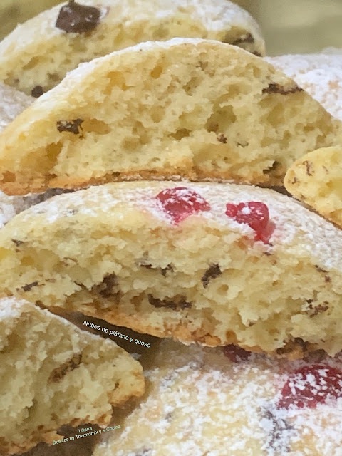 Como las Nubes con Queso se han convertido en las galletas estrella de mi casa hoy he pensado variar un poco la receta y añadir plátano. Siguen igual de ricas y esponjosas, las recomiendo.