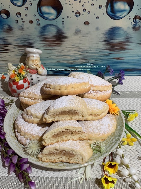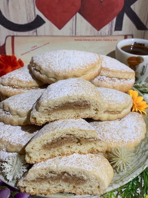 Ya listo el desayuno de mañana, unas ricas galletas rellenas con queso, nueces y coco