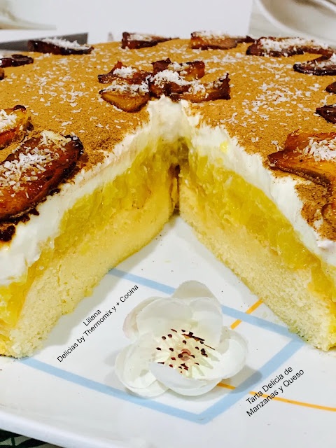 Para hoy os recomiendo esta rica tarta con manzanas y queso fresco, sabrosa y refrescante.