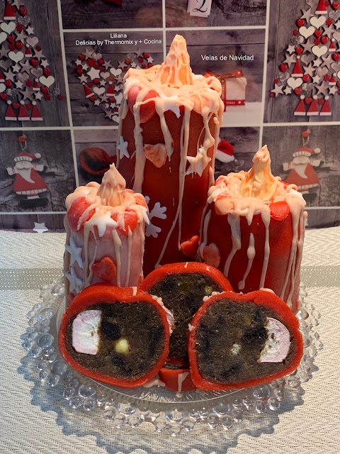– Cuando los rulos han cogido consistencia los he sacado de la nevera y he cortado tres trozos para las velas.