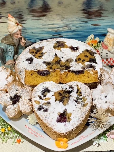 El cielo nublado fuera, el otoño a entrado muy fuerte, pero dentro reluce como una nube de algodón un bizcocho súper esponjoso de naranja, que nos a encantado.