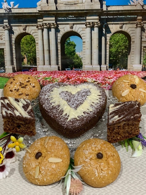 Para hoy, querid@s amig@s os propongo un rico bizcocho con nueces y manzanas que al lado de las galletas con naranja y miel a sido la delicia de este fin de semana en los desayunos o meriendas.
