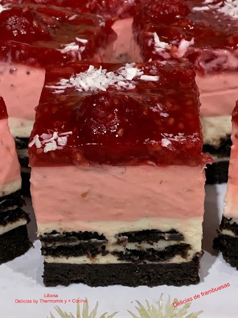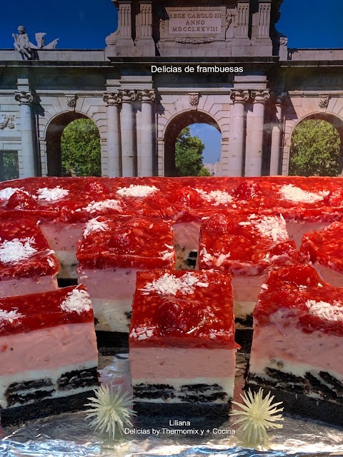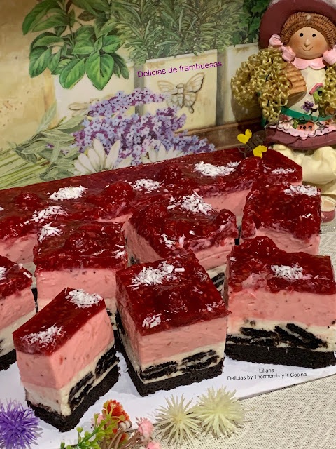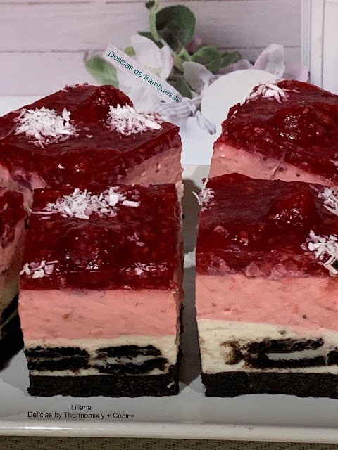 Delicias de frambuesas, un rico pastel sabor frambuesas que nos a encantado. Y como seguimos con la luz por las nubes lo recomiendo porque no necesita horno.