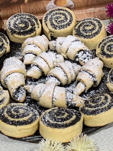 – Vamos a preparar el relleno. Echamos en el vaso todos los ingredientes, las semillas de amapola y las nueces reservadas antes, el azúcar glass, la leche y la ralladura de limón y mezclamos unos 10 seg./ vel.3. Sacamos el relleno en un bol y si hace falta mezclamos un poco más. Se puede mezclar todo directamente en el bol, es muy fácil.