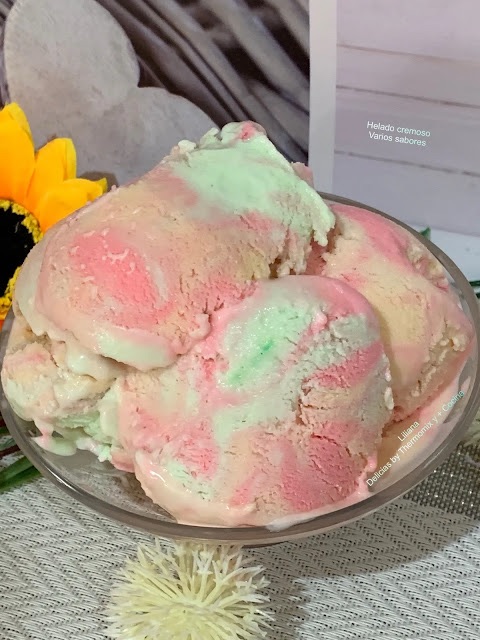 – Yo he repartido la masa en tres y he echado en una parte aroma de fresa, en la otra aroma de menta y en la otra de melocoton.