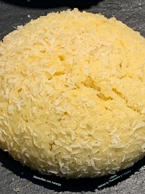 – La masa obtenida está un poco pegajosa pero no hay que añadir más harina. Si está muy densa, depende de la harina se puede añadir una o dos cucharaditas de zumo de naranja y mezclar un poco.