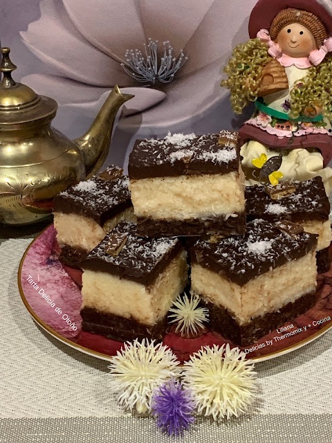 Como ya lo sabéis me encanta el coco así que para hoy os propongo una rica tarta con relleno de coco y con los tiempos que corren está hecha sin horno, hay que ahorrar.