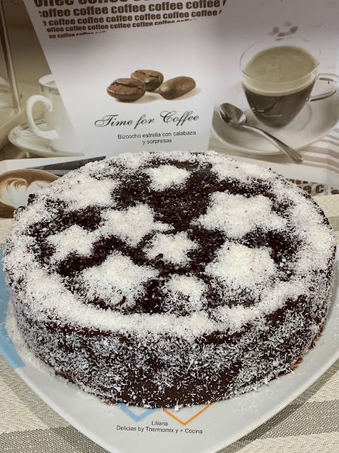 Esta mañana estaba pensando en hacer algo dulce, el cocido madrileño estaba ya al fuego y de repente veo en facebook dos postres de mis queridas amigas Marga Cobas y Ina Niculescu, bizcocho de calabaza y postre con bolitas de coco.