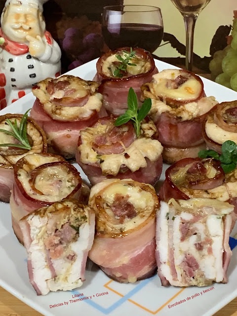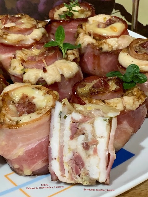 Enrollados con pechuga de pollo, beicon y queso, nos han encantado, seguro que los voy a repetir.