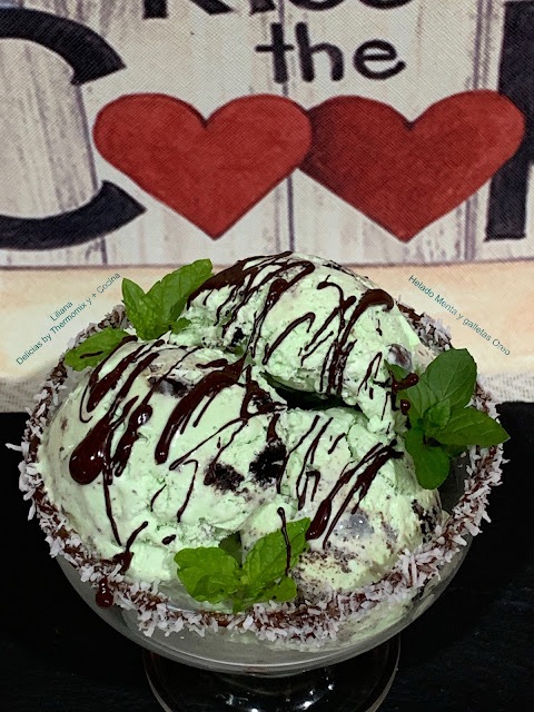 Ya está el verano entre nosotr@s y claro no pueden faltar los helados. Para hoy os propongo este rico y refrescante helado de menta y galletas Oreo. Me ha encantado la mezcla de los sabores.