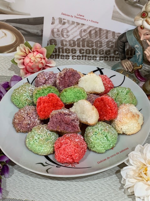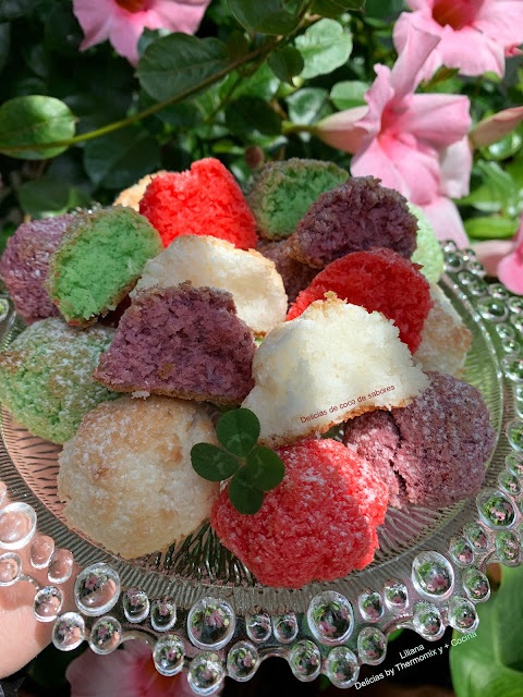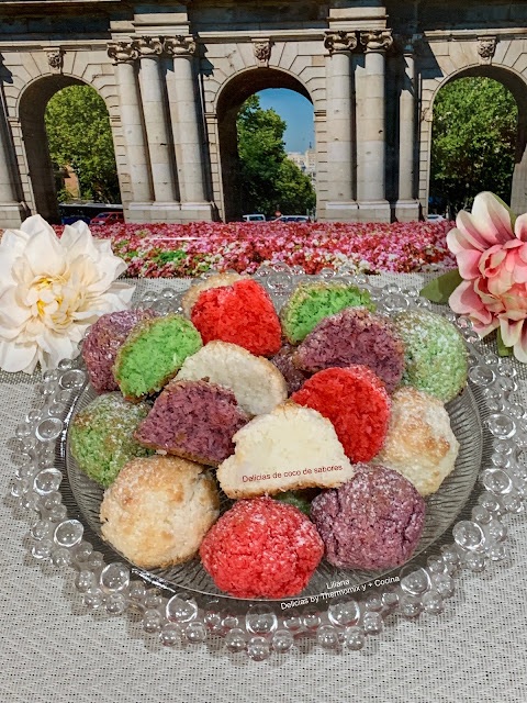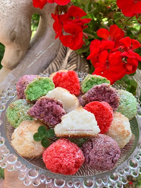 Como nos han gustado mucho las Delicias de coco he pensado que las podía hacer y de sabores y aquí las tenéis con sabor a menta, frambuesa, violetas…