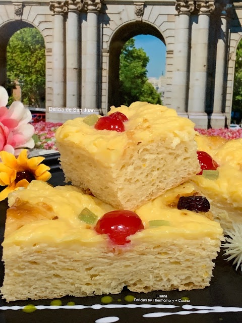 La coca de San Juan me a sorprendido gratamente, está como una nube, esponjosa… me he quedado sin palabras, hablando con ella en la cocina.😋🤣