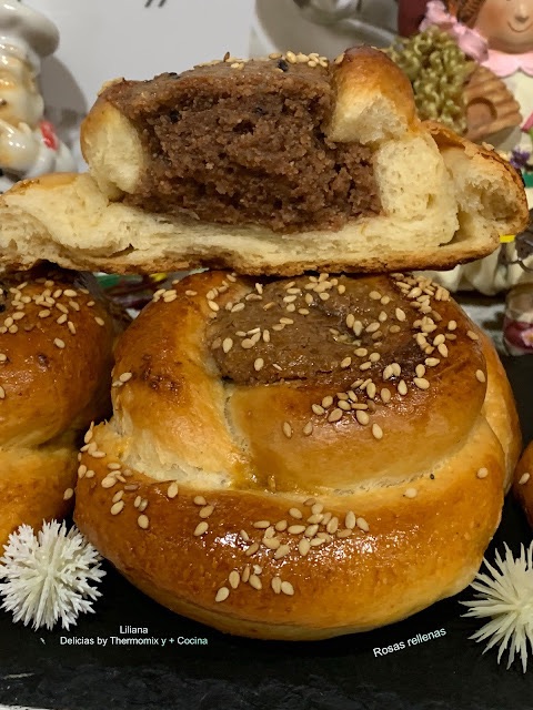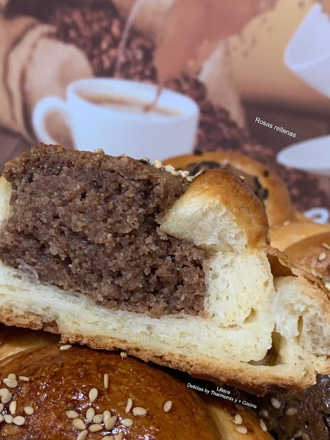 – Sacamos del horno y dejamos enfriar, si aguantamos.😂 Y ahora a disfrutar de nuestras rosas rellenas.