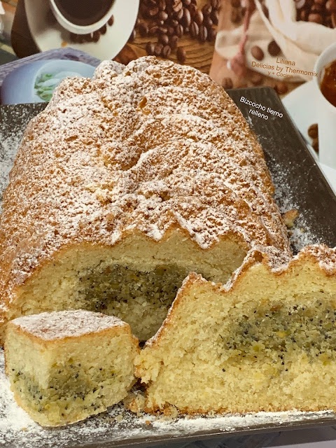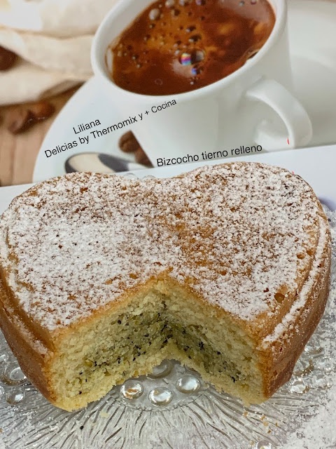 Os recomiendo este bizcocho tierno y húmedo, relleno con una mezcla deliciosa de pistachos, almendras y coco. El relleno lo podéis adaptar a vuestros gustos.