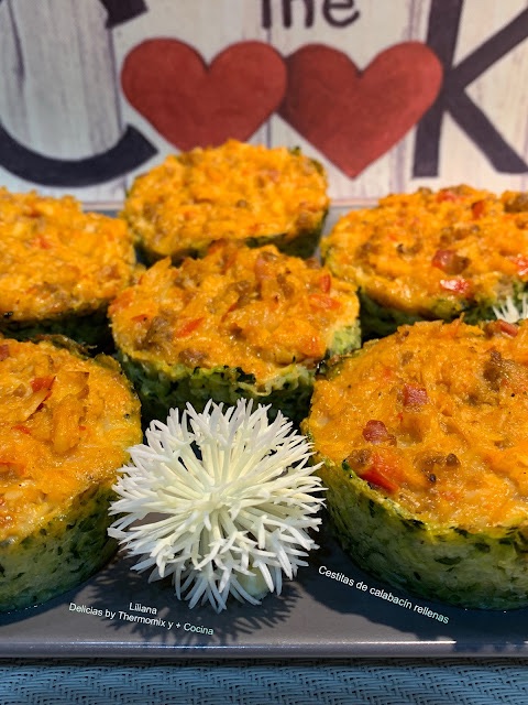 – Echamos la mezcla de calabacín en los moldes y damos forma de cestita. Horneamos 15 min. a 180ºC.