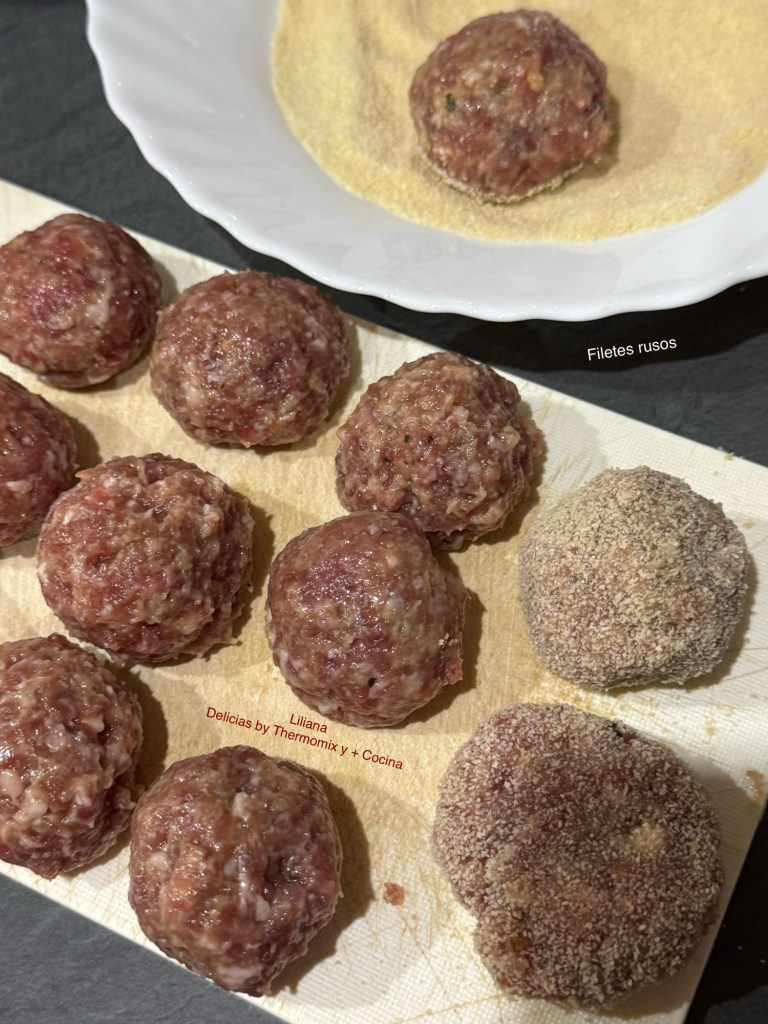– Sacamos de la nevera, hacemos bolas, las aplastamos y las pasamos por pan rallado.