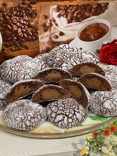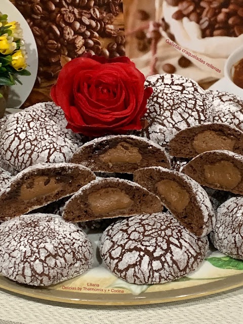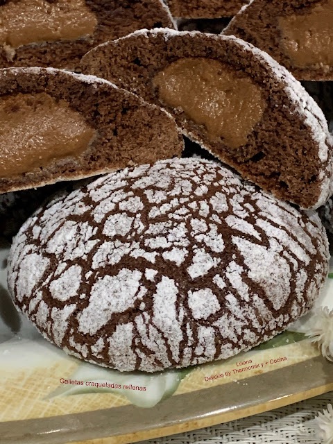 Pensando en el desayuno de mañana he preparado estas ricas galletas craqueladas, rellenas. Nos han gustado tanto, pocas han quedado para desayunar, con esa textura que tienen que se deshacen en la boca.