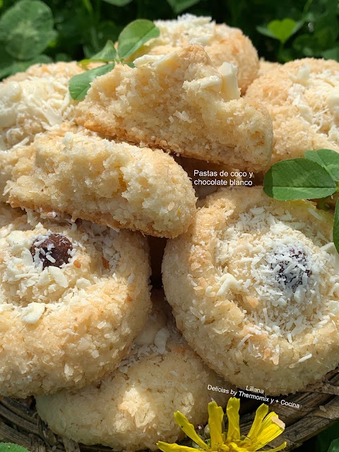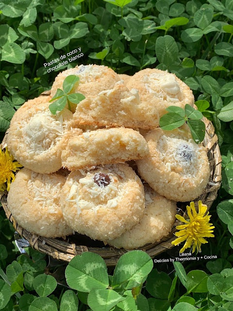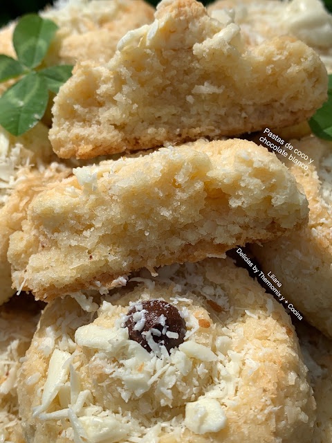Como ya sabéis me encanta el coco y hace unos días una amiga me ha dicho que si encuentro una receta de galletas de coco y chocolate blanco, así que manos a la obra.
