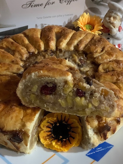 Hoy vamos a hacer una rica y consistente tartaleta con masa Galette, rellena con crema de nueces y piña.