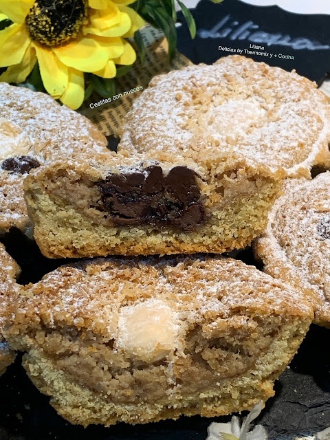 – Echamos el relleno y encima le podemos poner una almendra o una nuez y coco rallado. También podemos rellenar por la mitad y echamos un poco de nutella y cubrimos con relleno. Salen más o menos unos 35 pastelitos.