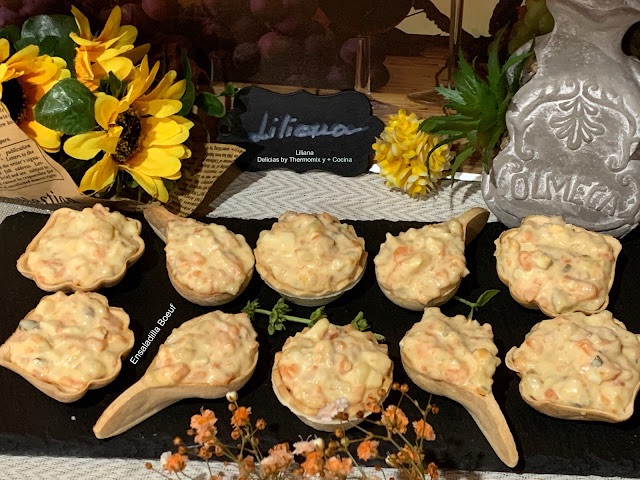 – La podemos presentar en un plato individual adornada por encima con láminas de zanahoria, pepinillo a gusto o en tapas individuales.