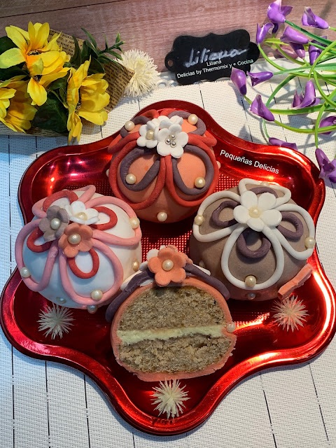 – Decoramos con hilos finos de fondant, flores hechas de fondant, perlas comestibles…