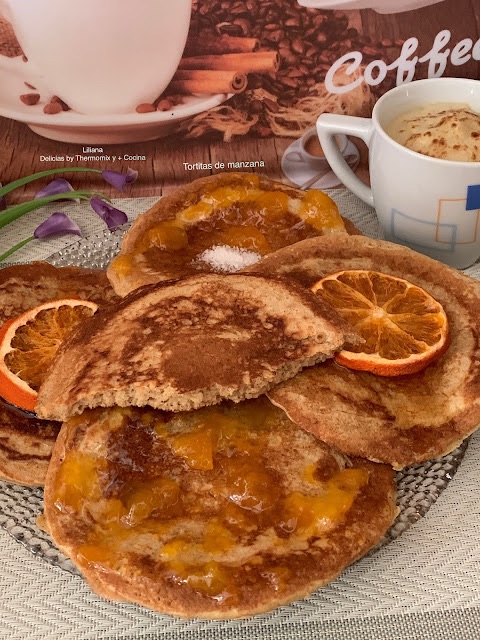 Hoy os invito a desayunar estas ricas tortitas de manzana con bajo contenido calórico y azúcares.