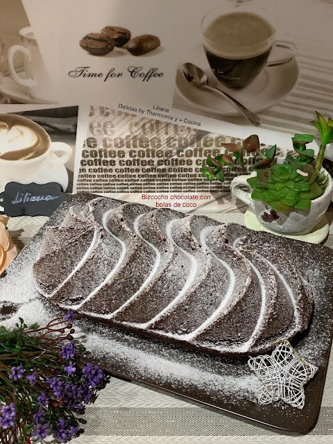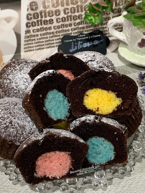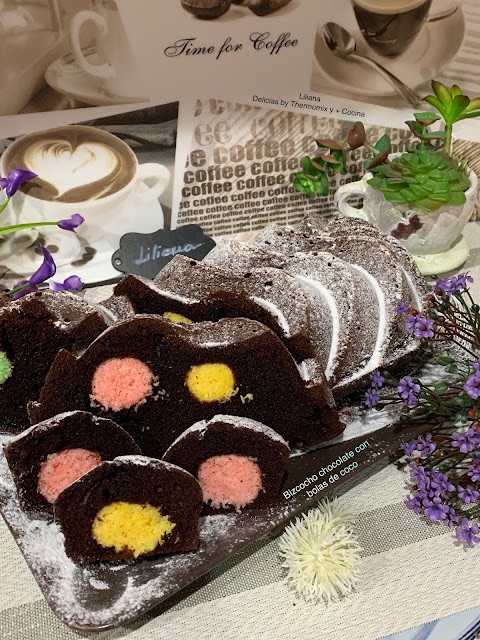 Bizcocho de chocolate con bolas de coco