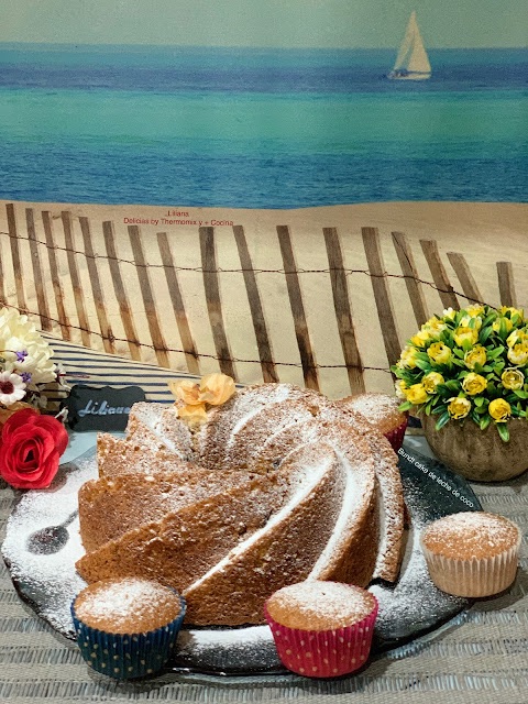 – Si os queda algo de masa como a mi (el molde se rellena 3/4 de su capacidad) podéis rellenar unos moldes de magdalenas y hornear unos 20 min. a 170ºC.