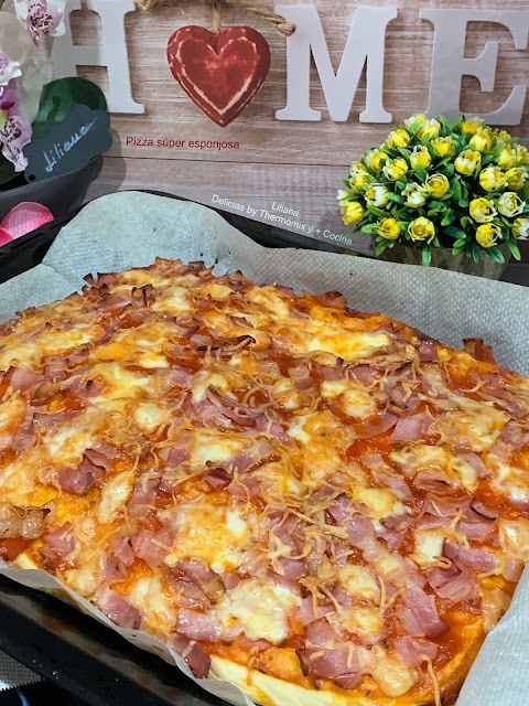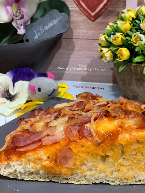 -Sacamos la bandeja y rellenamos la masa con lo que más nos guste, yo con salsa de tomate, jamón york, beicon y queso. Horneamos otros 10-15 min.