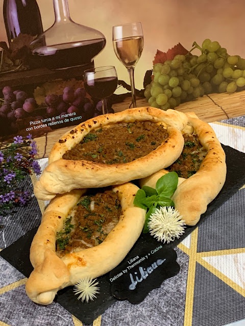 Pizza turca, a mi manera, con bordes rellenos de queso